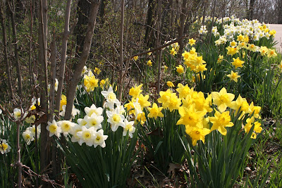 As I've outlined here before, the back of our house is really the front to us, and visa-versa (I don't know where that leaves the sides). Where people drive in is pretty nondescript, and few would suspect that there is an extensive garden here... though in spring the daffodils along the driveway might give a clue.